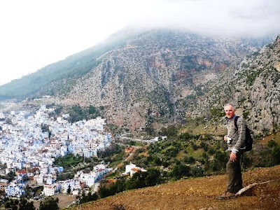 The views were remarkable, with the blue and white town shining against the olive green and browns and greys of the mountain. In the distance a cloud obscured some mountains but a clear peak stood out above it. It is a very beautiful place, and has religious significance. It was closed off to Christians until the arrival of Spanish troops in 1920. Our guide book says that prior to that one man spent an hour here disguised as a rabbi, another came and was discovered and poisoned by the locals in 1892 and the third, William Summers, a journalist, just survived and escaped to write about his experiences in a book called ‘Land of an African Sultan’. The town of